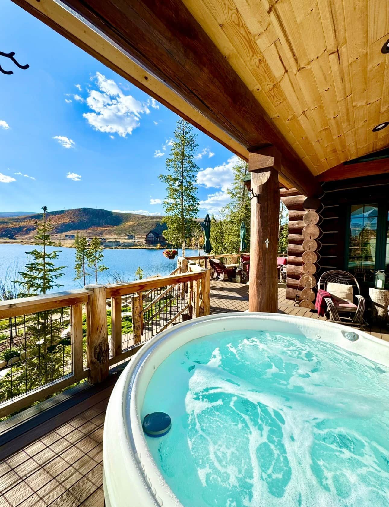 🌅 Soak in the private hot tub with stunning lake and mountain views