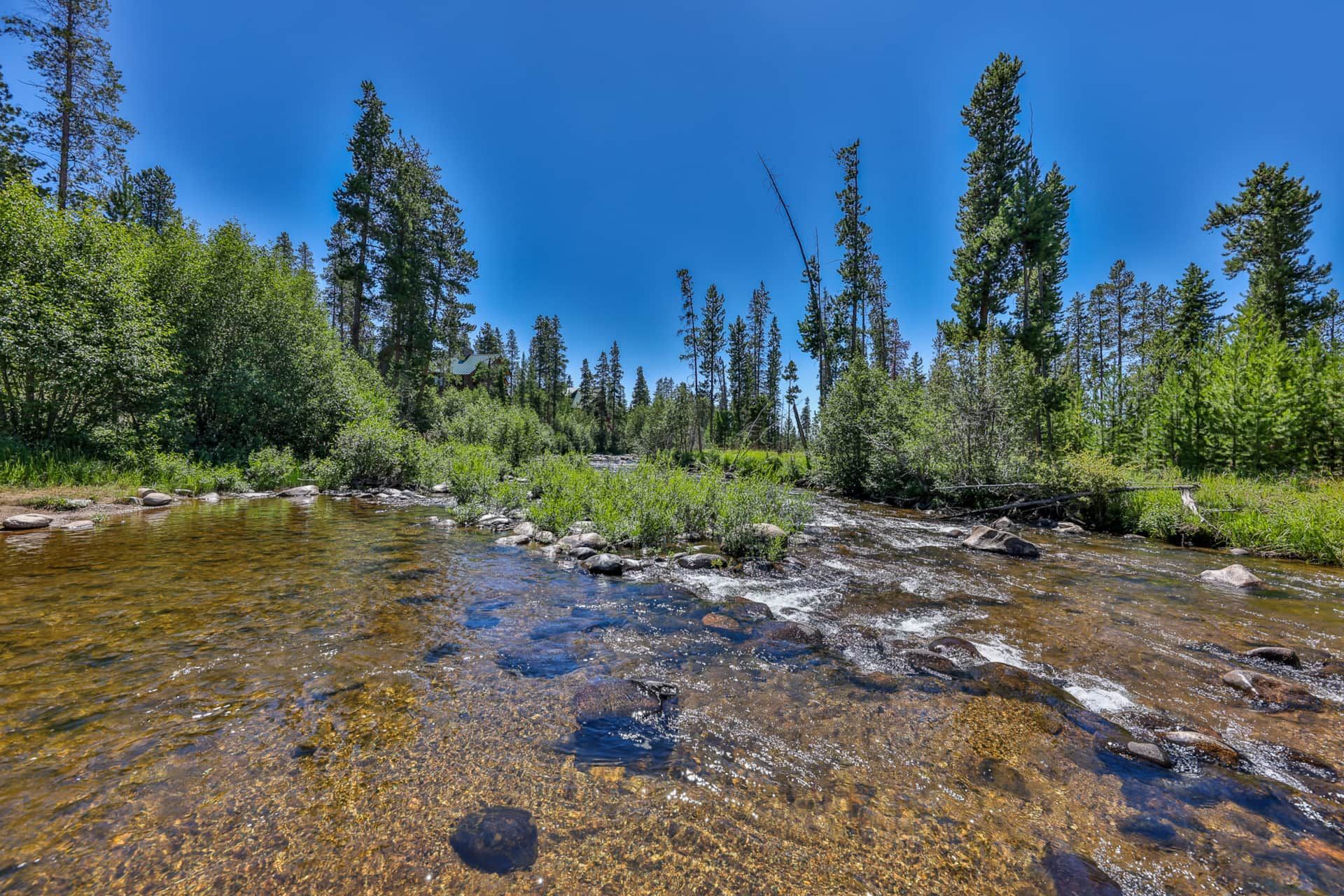Step outside to 185 feet of private riverfront, where you can fly fish for trout in your own exclusive stretch of the Colorado River. Enjoy the tranquility of 2.5 wooded acres, complete with a sandy beach, a riverfront firepit, and an outdoor paradise full of activities. Challenge your family to a round of disc golf, play volleyball, cornhole, horseshoes, or simply relax in a hammock and soak in the white-capped mountain views.