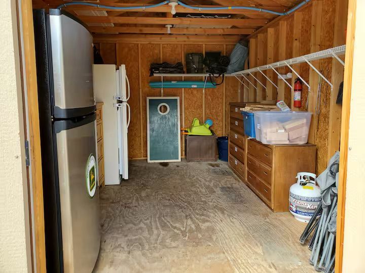 The cabins are equipped to support your hunting trip with ample space to store gear and prepare for the next day’s pursuit. The Storage Cabin is stocked with extra fridges and camp chairs, so you have room for all your hunting essentials and can relax in comfort. The spacious Main Cabin features a fully stocked kitchen for preparing hearty meals, while the outdoor kitchen with a propane BBQ and CampChef makes cooking dinner a breeze. After a day of hunting, enjoy the rustic charm of the property, with cozy sleeping quarters in four different cabins designed to accommodate groups of hunters or family getaways.