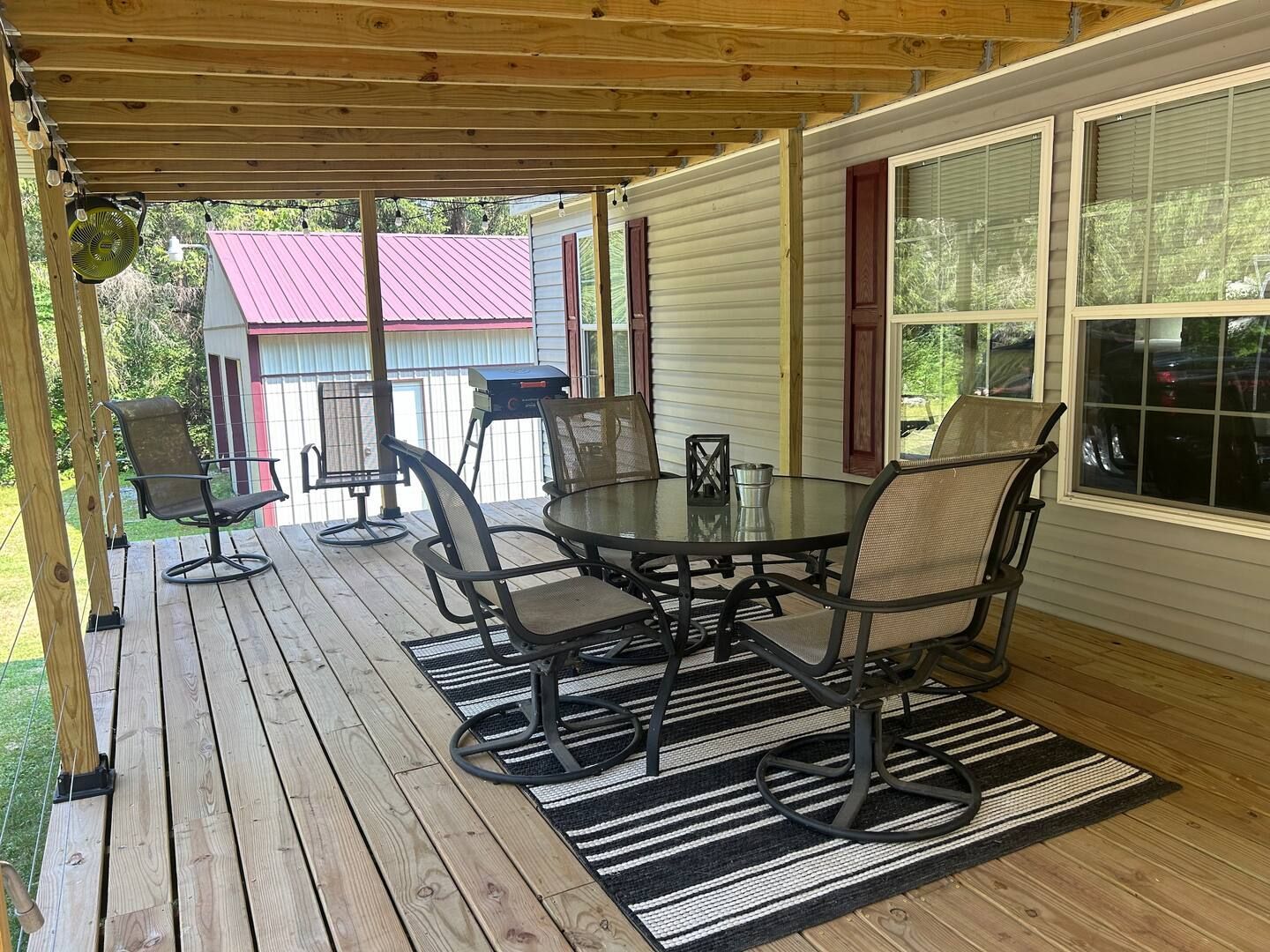 Bring the pontoon or the bass boat, with plenty of parking available. Guests can also add-on a golf cart rental to explore the scenic surroundings, and Wi-Fi is available to ensure connectivity during your stay. The expansive front and back yards offer seclusion, while the fire pit area provides a great spot for telling those big fish stories. The provided Blackstone Grill is an added bonus to cook up the day’s catch.