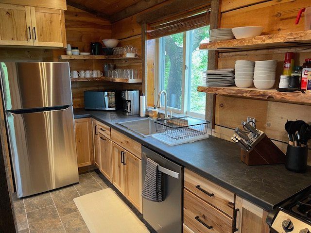 The cabin is simple, clean, and built for comfort after long days outdoors. It includes a full kitchen for preparing meals, a hot shower, and a firepit under the stars to relax and relive the day's catches. There’s plenty of space for gear, waders, and coolers, and the quiet setting ensures you’re fully immersed in nature from the moment you arrive. Whether you're tying flies at the table or listening to owls call from the woods, it’s the kind of place that makes you slow down and appreciate the details.