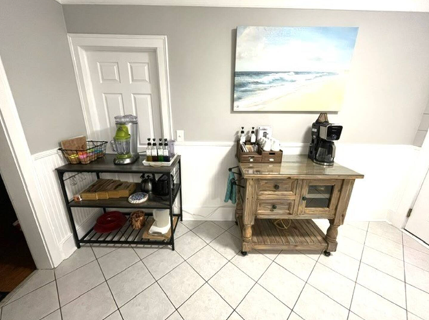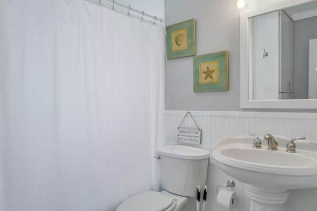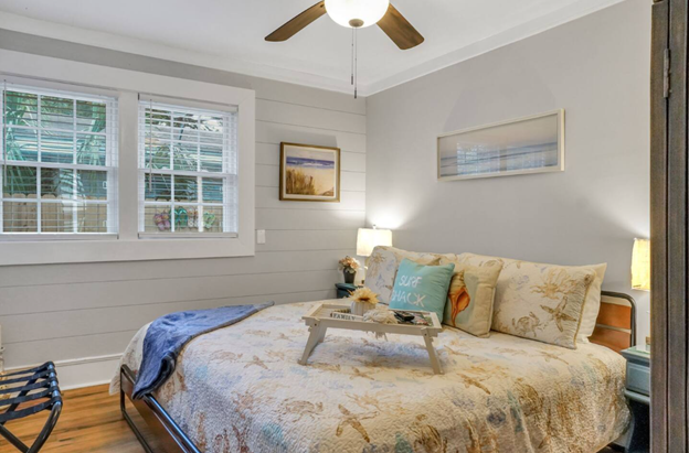 The home comfortably accommodates up to six guests, with three well-appointed bedrooms. The master bedroom features a king bed and an ensuite bathroom, along with a 45-inch TV for a private retreat. The second bedroom has a queen bed and a 45-inch TV, while the third bedroom offers another queen bed and a 20-inch TV. Whether you’re fishing the nearby waters, exploring the island, or simply relaxing at the house, this retreat is the perfect place to enjoy the best of St. Simons Island.