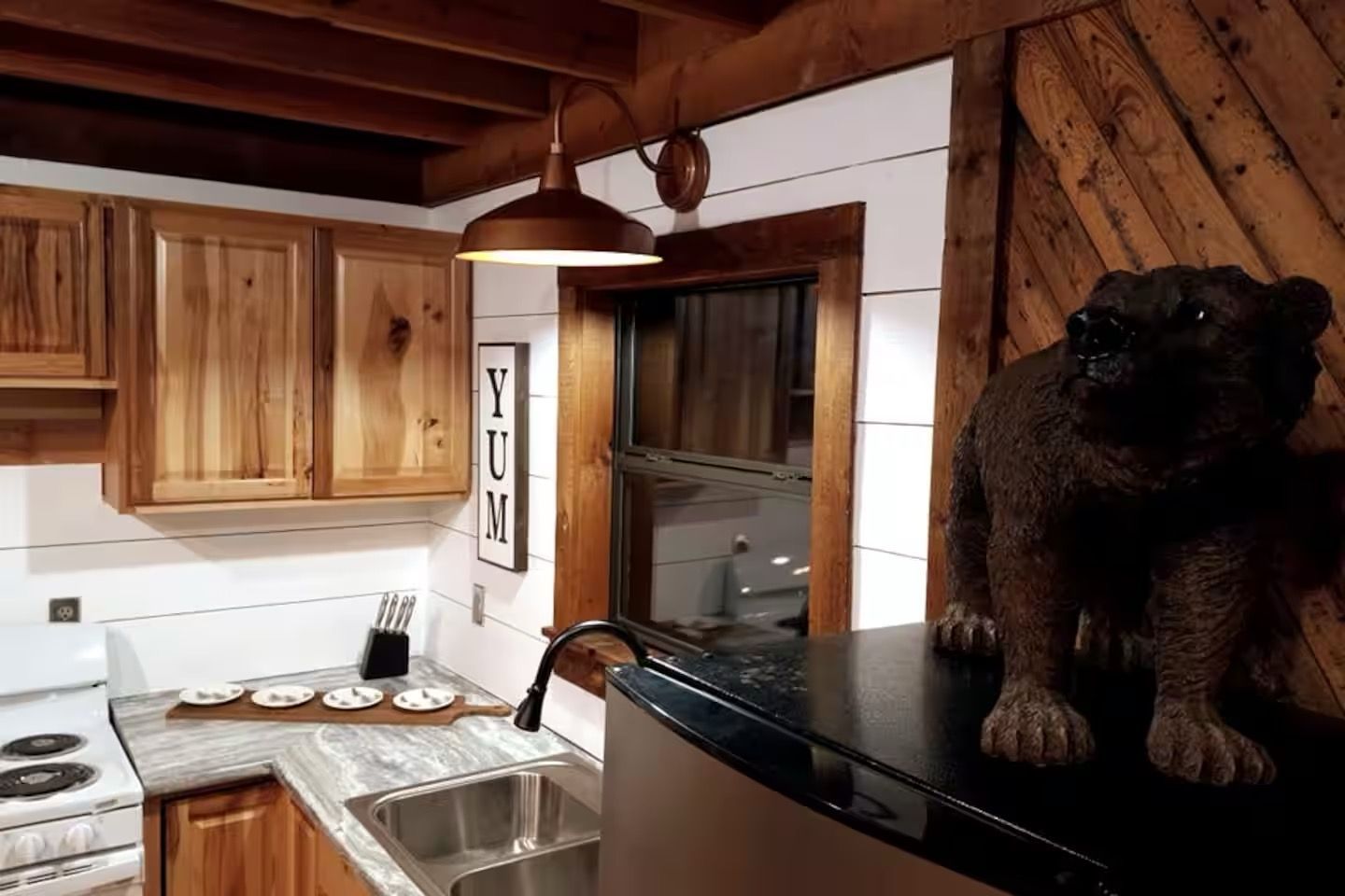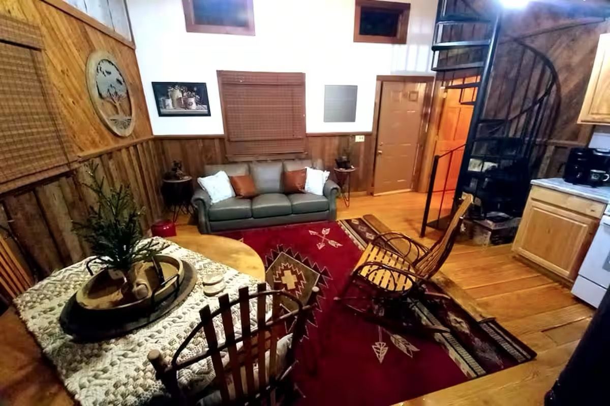 Escape to our cozy cabin near Combs, Arkansas, nestled in the heart of the Ozarks, where adventure and relaxation await. Set against a stunning bluff line, this charming cabin comfortably sleeps up to 7 people, making it perfect for families or small groups. The cabin features two bedrooms and a loft, with a queen bed on the main floor and a bunk bed with a queen on the bottom and a super twin on top upstairs. The loft offers two twin beds, ideal for kids or extra guests. Enjoy the recently remodeled kitchen, spacious living area with a 50" TV and DVD player, and high-speed WiFi. Outside, relax on the large porch with rocking chairs, enjoy meals on the BBQ grill, or gather around the new firepit area with a pavilion to share stories under the stars. With plenty of parking for vehicles, ATVs, and trailers, the cabin is ready for all your adventure gear.